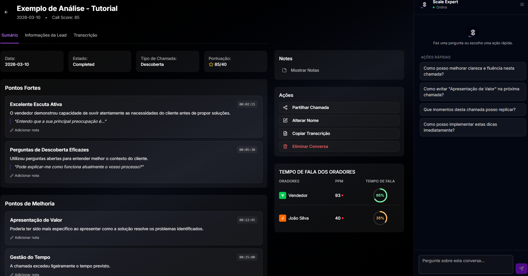 Não é AI genérico. É o conhecimento de 170+ departamentos comerciais, sistematizado em agents que analisam as tuas calls e entregam feedback acionável — 24 horas por dia.